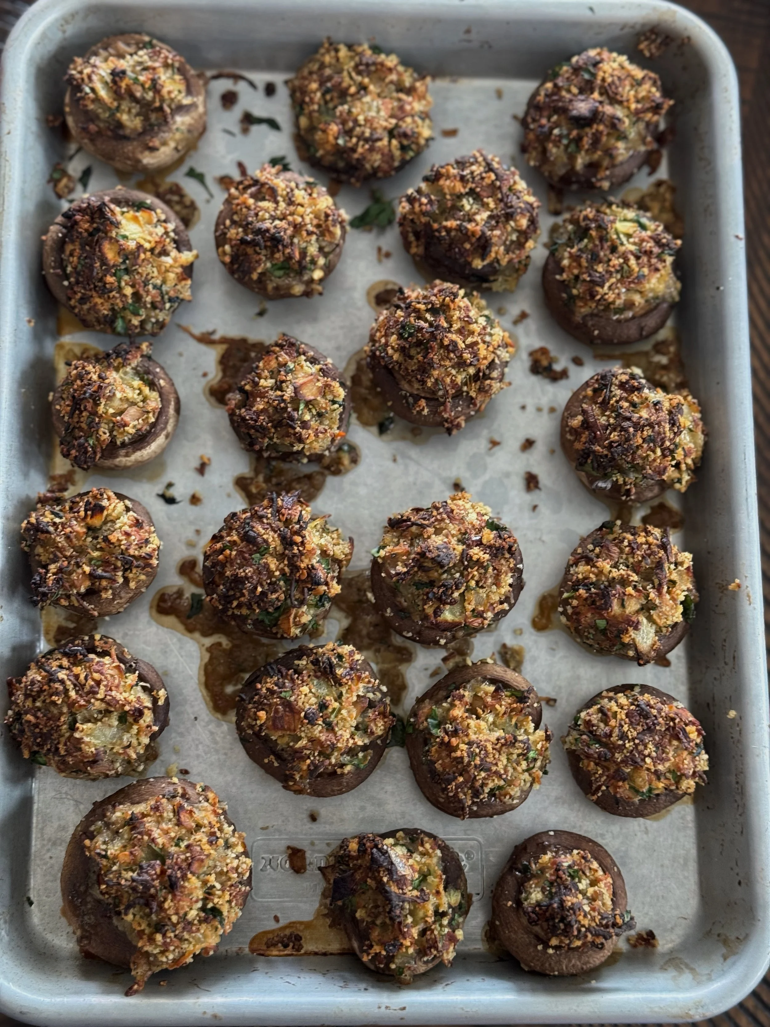 One of the first dishes I learned to make from my mom was her highly prized stuffed mushrooms. This is likely because I was enlisted to separate mushroom caps from stems and subsequently stuff the caps after she carefully seasoned and mixed her “secret” ingredients into the filling. These mushrooms are a labor of love. I love to eat them, and I certainly love to serve them up at the holidays, but there is some labor and a level of expectation involved that gives me trepidation.