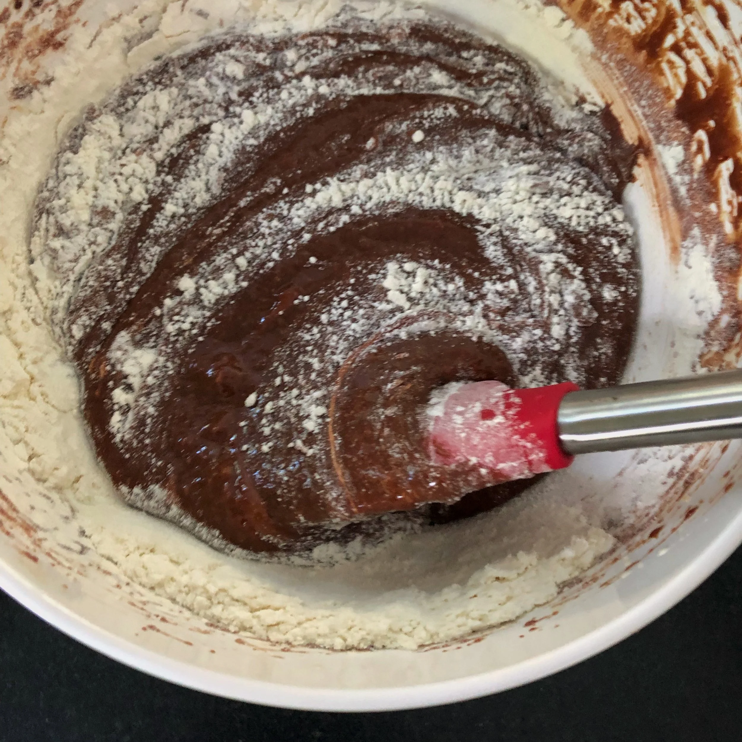 While "folding" is simple, it is not intuitive. Many bakers benefit from a demonstration and an explanation of the technique when they encounter it for the first time. More importantly, understanding why you need to fold the ingredients can clarify the method involved in folding. Folding is a gentle way of mixing dough or batter with the intention of avoiding deflation of the ingredients, particularly when working with whipped egg whites or whipped cream, which are essential for trapping air. To fold, first use a flat spatula (not a spoon, never a whisk). Sweep the spatula along the curve of the bowl, moving from the bottom to the top and turning the bowl as you go.