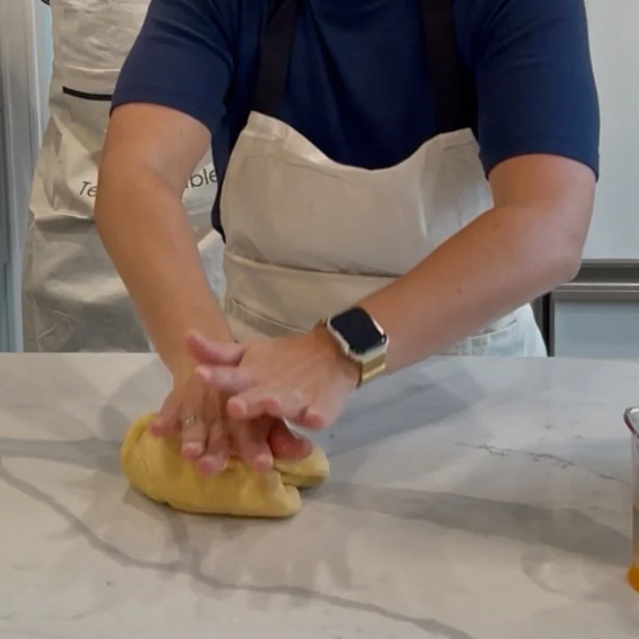 I’m including this because it’s fun, and I love the picture! In some yeasted or risen doughs, such as cinnamon rolls or challah, you might be instructed to "punch down" the dough. This technique is used to deflate some of the carbon dioxide released by the yeast, making the dough more manageable for shaping, rolling out, and filling. Additionally, it redistributes the yeast so that the dough can continue to rise in a second proof. You literally use your fist and punch into the risen dough. It’s a fun process!