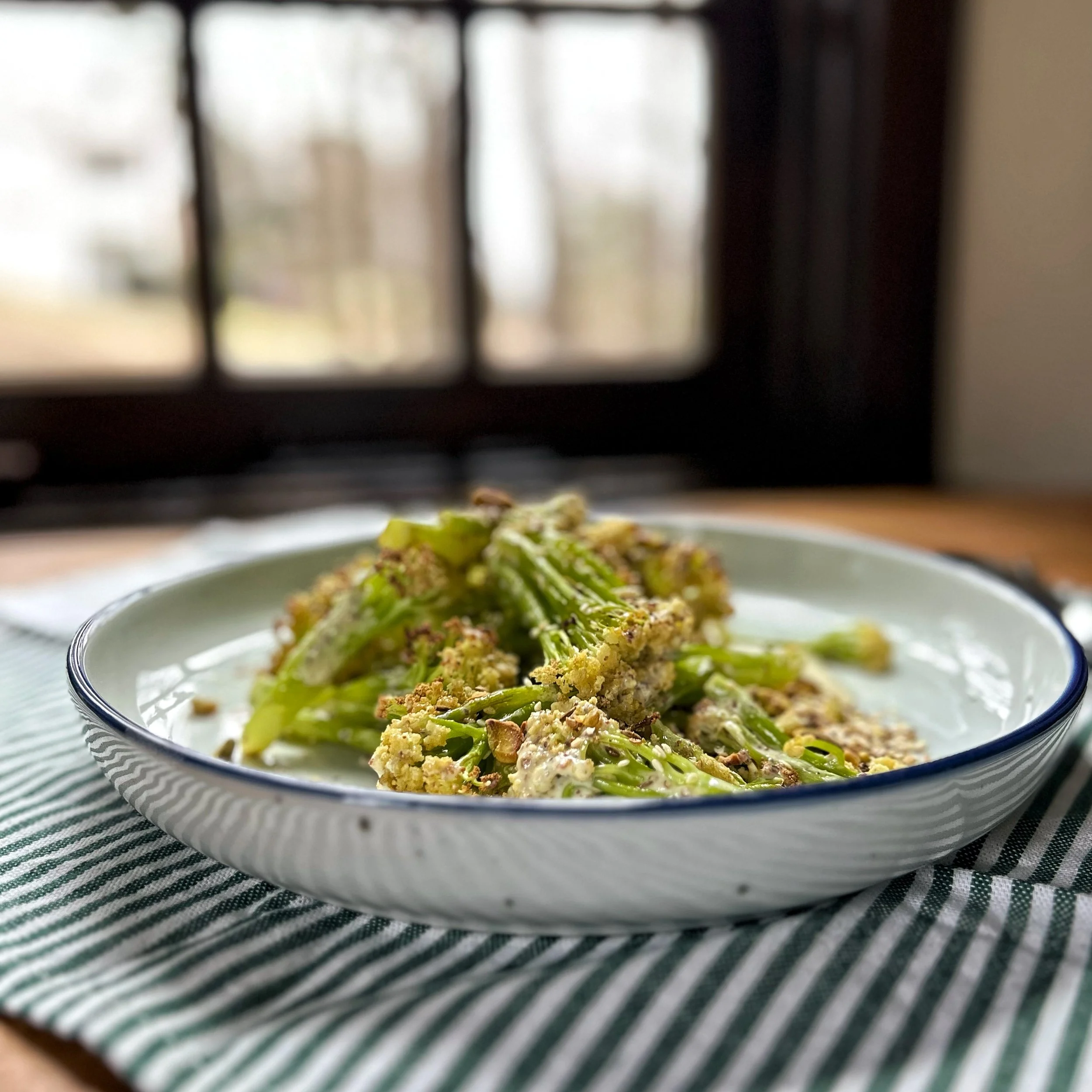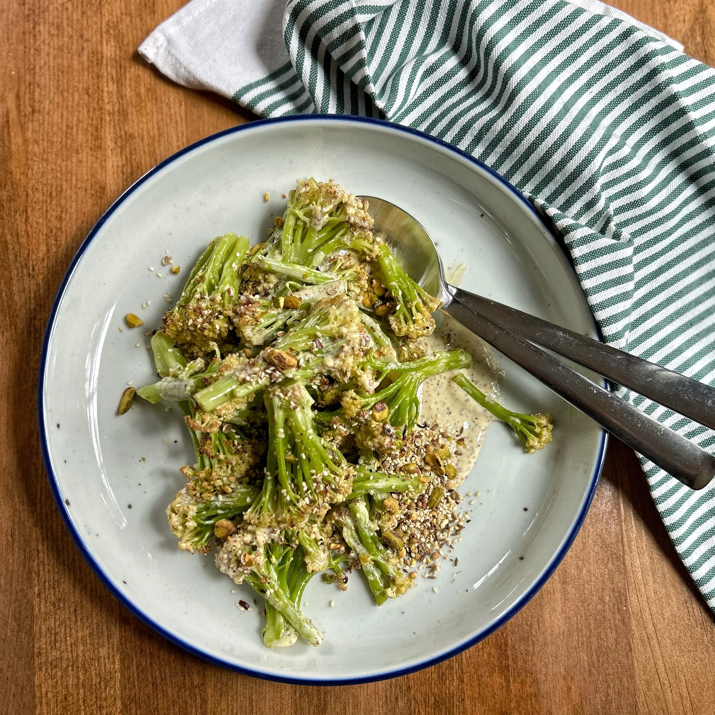 ROASTED BABY CAULIFLOWER WITH CREAMY MUSTARD VINAIGRETTE AND SESAME PISTACHIO DUKKAH