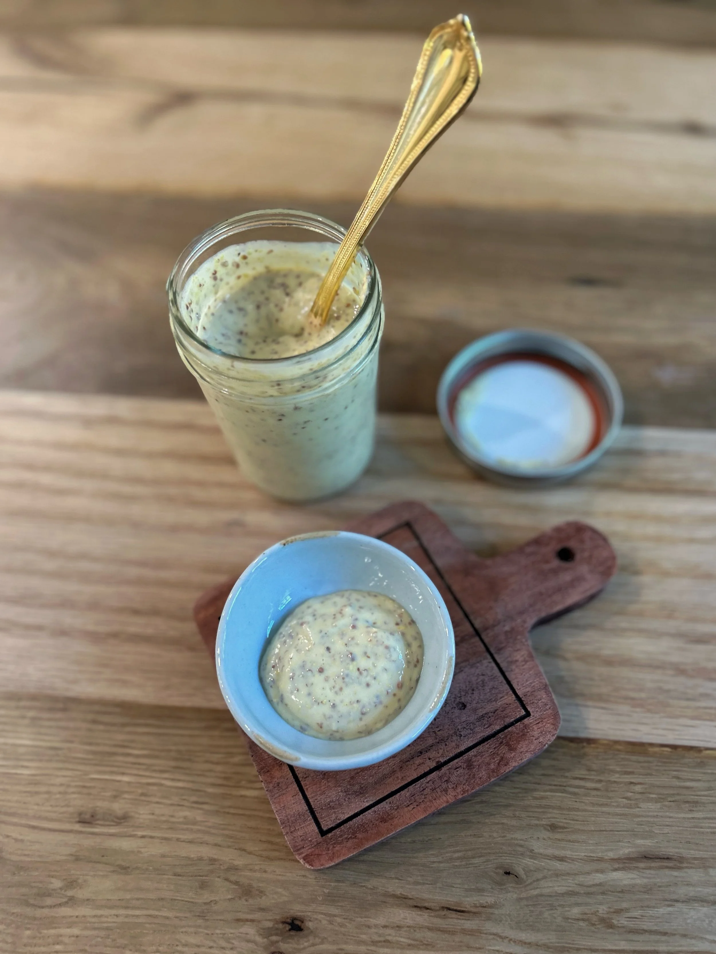 Note: The spiciness of mustard can vary greatly between brands and even between jars of the same brand. Each person also has different taste preferences regarding the strength of mustard. I recommend starting with 3 tablespoons of mustard, tasting it, and then adjusting the amount to suit your palate. Personally, I use 6 tablespoons of either the mustard shown in the photo, Grey Poupon Harvest Coarse Ground or Country Dijon, or Trader Joe’s Whole Grain Dijon Mustard, because I LOVE mustard!